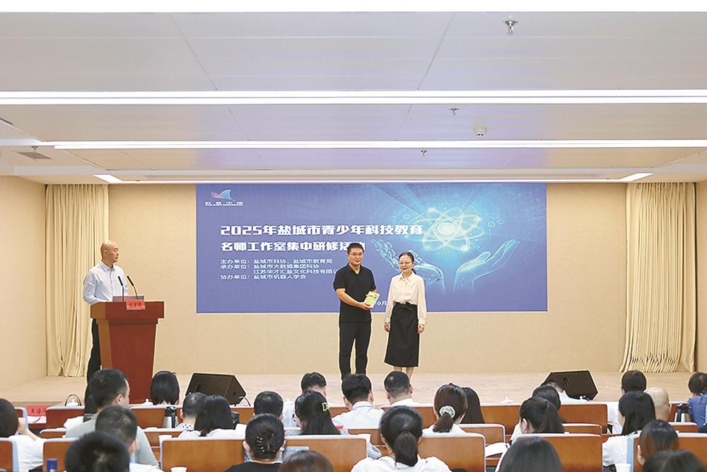 本报讯 (记者 李泓儒)青少年是科技未来的创造者。为进一步精准赋能,培养科技教育骨干,近日,由市科协、市教育局联合主办,市大数据集团科协和江苏华才汇盐文化科技有限公司承办的“青少年科技教育名师工作室集中研修活动”在盐城成功举行,市科协主席卫爱军出席开班仪式。